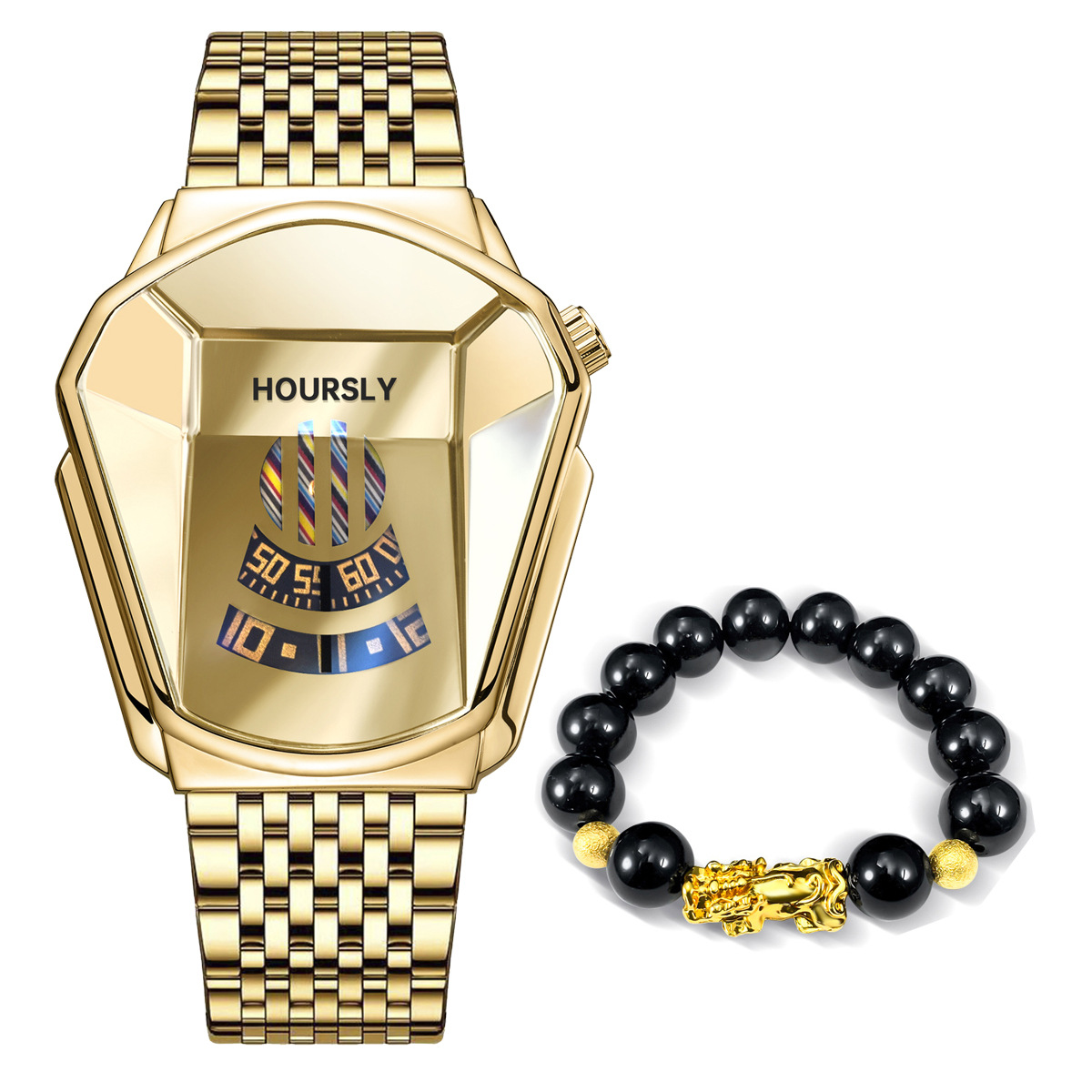 Turntable Steel-band Watch Pixiu Bead Bracelet Set
