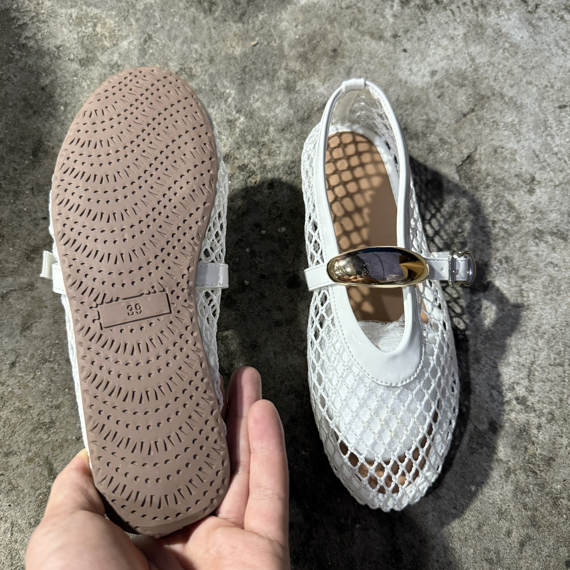 The "it" shoe of the season. Elevate your daily rotation with the Season Prestige Mesh Mary Jane. Balancing a delicate fishnet aesthetic with a sophisticated round-toe silhouette, these flats offer effortless breathability and a modern "naked shoe" edge.