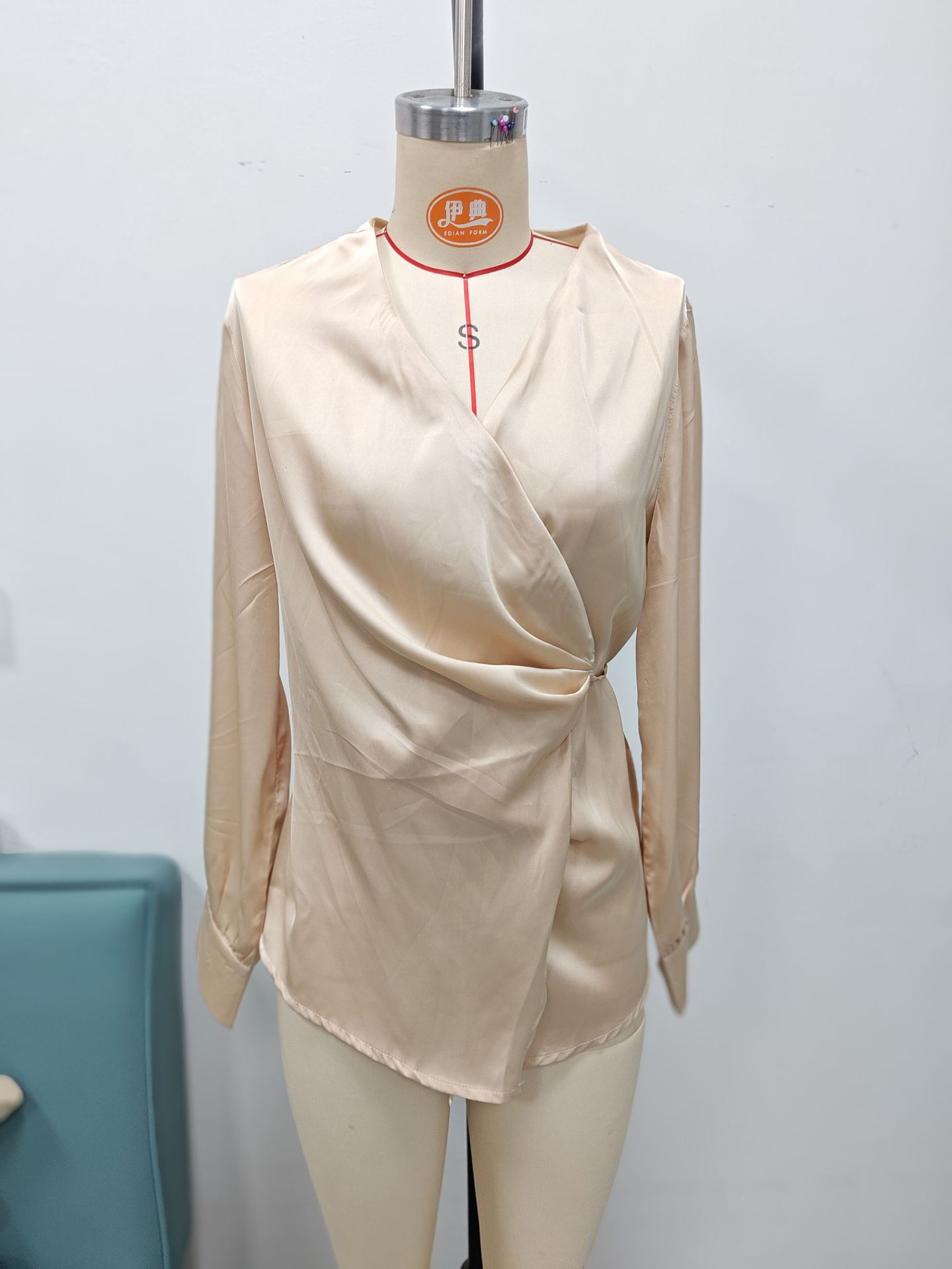 Champagne Asymmetrical Long Sleeve Blouse | Season Prestige